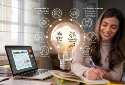La diferencia se centra en que el diseño gráfico se enfoca en comunicar con claridad y coherencia visual; el diseño publicitario se orienta a persuadir, posicionar y mover resultados dentro de campañas. Ambos trabajan con creatividad, herramientas visuales y construcción de marca, pero no buscan exactamente lo mismo.